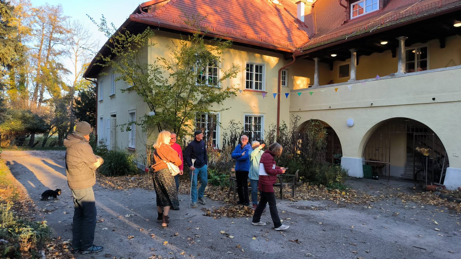 Das besondere Highlight dieses NÖ Vernetzungstreffens war die Besichtigung des Kastells, das vom Wohnstrudel 2024 erworben wurde. Christoph Kirchberger und David Dorfner stellten das Projekt vor und führten durch das Gebäude und den umgebenden Park. Das Kastell steht teilweise unter Denkmalschutz, die Parkanlage ist als Naturdenkmal ausgewiesen. Das Kastell war bezugsfertig, da es davor vor allem für Dienstwohnungen genutzt wurde. Der Wohnstrudel ist ein HABITAT Projekt, bei dem die Finanzierung zu einem hohen Anteil über Direktkredite erfolgte. Hierfür wurde vom Wohnstrudel professionelle Öffentlichkeitsarbeit durchgeführt, um private Investor:innen zu finden.