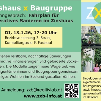 Im Mittelpunkt stehen leistbare und nachhaltige Sanierungen durch alternative Finanzierungen und geförderte Sockelsanierungen. Außerdem werden Modelle der Zusammenarbeit zwischen Zinshauseigentümer:innen und Baugruppen vorgestellt, die neue Wege zu gemeinschaftlichem und zukunftsfähigem Wohnen im Bestand aufzeigen.
