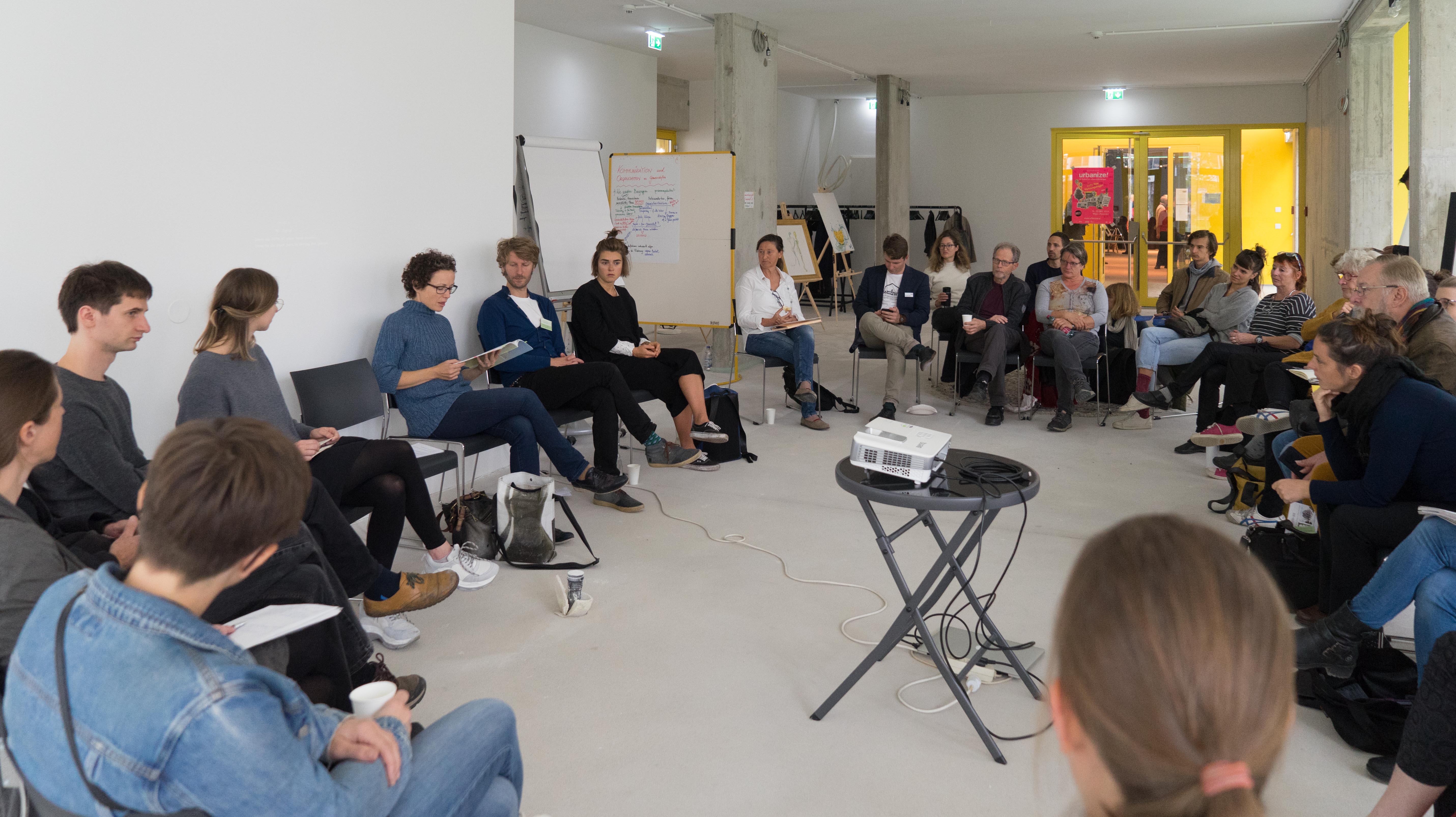 Die Gruppen stellten sich vor, dazu gabs die Gelegenheit, sich zu konkreten Fragen aus dem Baugemeinschaftsalltag, Prozessen der Umsetzung und den Projekten auszutauschen. Die Veranstaltung war öffentlich und kostenlos und fand im Rahmen des urbanize! Festivals statt.