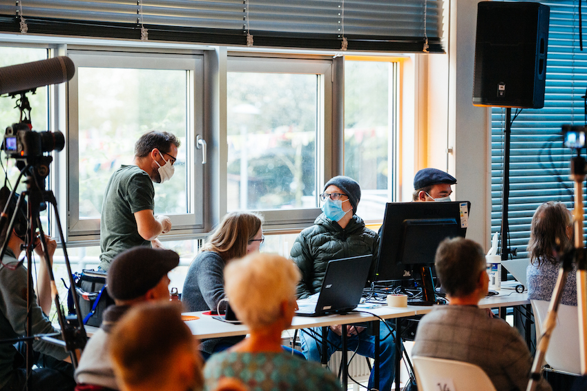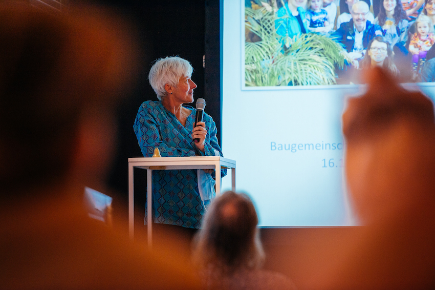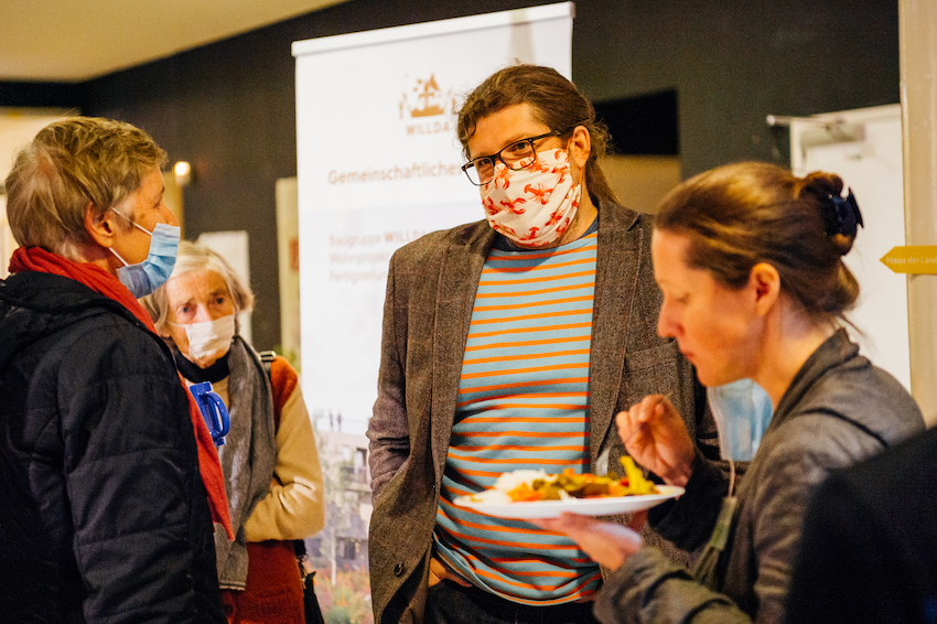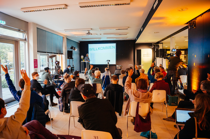 Nahezu 100 Personen, davon Baugemeinschaften (Baugruppen), schon länger bestehende gemeinschaftliche Wohnprojekte, Architekt*innen, Projektbegleiter*innen und Interessierte nahmen an der Veranstaltung der Initiative vor Ort oder Online via Livestream teil.