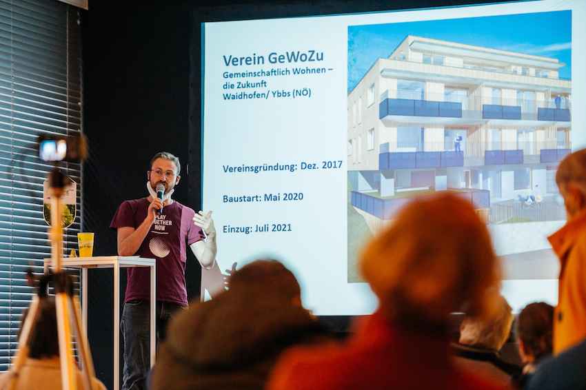 In den Diskussionen zeigte sich, dass gemeinschaftliche Wohnformen Vorbilder für nachhaltige Lebensstile sind. Weniger Vereinsamung, Gemeinschaft, Selbstbestimmtheit und Partizipation sind soziale Benefits des gemeinschaftlichen Wohnens. Denn für viele Wohnprojekte bedeutet wohnen mehr: Angebote ins Grätzel, gesellschaftliche Initiativen wie öffentlich zugängliche Raumangebote für Veranstaltungen und Kurse oder kulturelle Initiativen bereichern auch das Umfeld. Darüber hinaus sind für viele Wohnprojekte Ökologie, umweltfreundliche Mobilität und Energieeffizienz wichtige gelebte Anliegen. Franz Fluch vom in Bau befindlichen Wohnprojekt GeWoZu aus Waidhofen an der Ybbs brachte es auf den Punkt: „wir wollen vieles teilen und persönlich wachsen, auf eine effiziente und achtsame Ressourcennutzung achten und den kommenden Generationen eine lebenswerte Welt erhalten.“