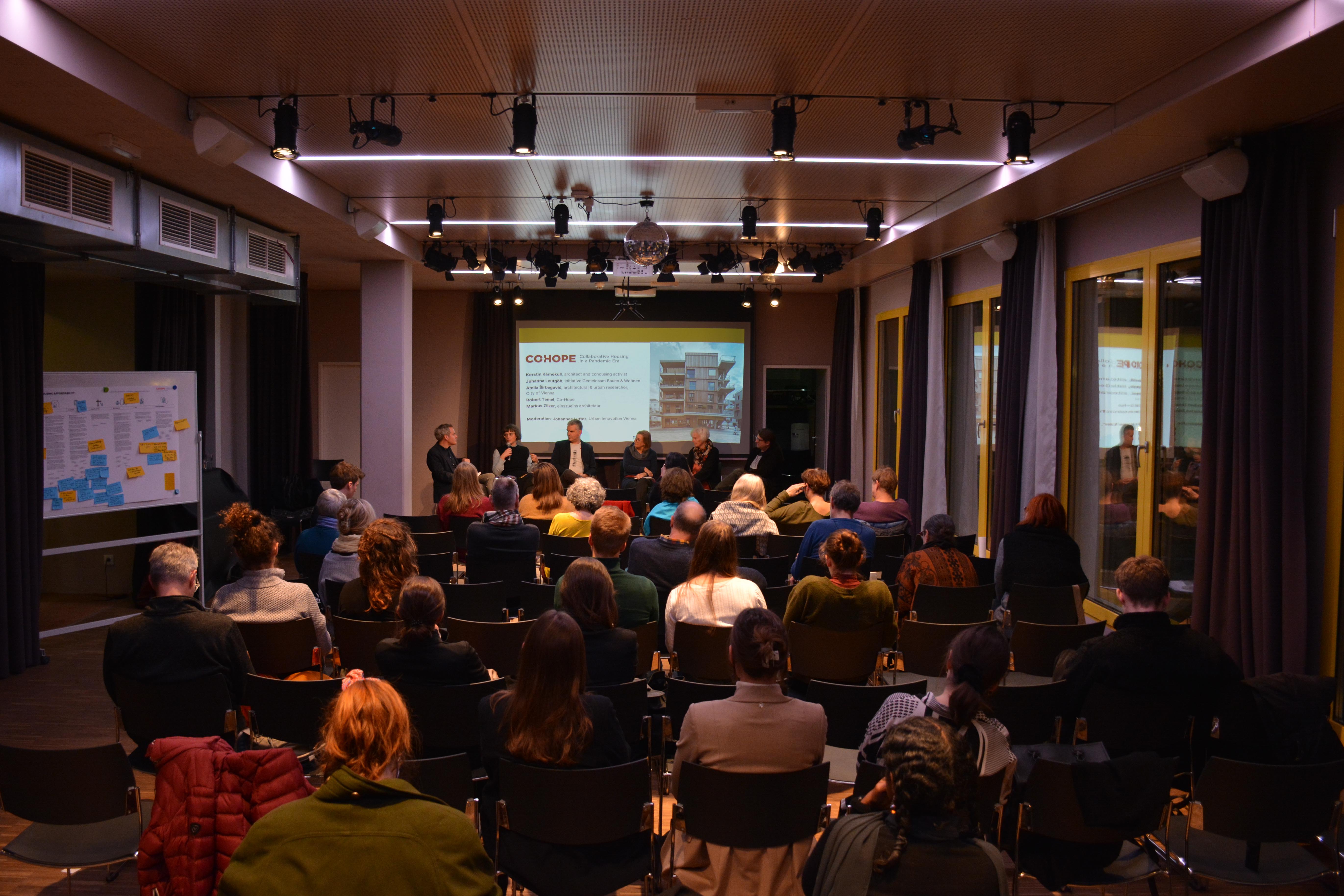 CO-HOPE (Collaborative Housing in a Pandemic Era) ist ein internationales Forschungsprojekt mit Institutionen aus Schweden, Österreich, Finnland, Frankreich und Spanien. Durch theoretisch fundierte angewandte Forschung zum gemeinschaftlichen Wohnen zielt das Projekt darauf ab, potenzialorientierte Handlungsempfehlungen für politische Entscheidungsträger zu generieren. Im Rahmen des Projekts wird ein internationalen Kapazitätsaufbauprogramm für „Kollaboratives Wohnen“ erarbeitet, das den Zusammenhang zwischen Leistbarkeit, Integration und Gesundheit berücksichtigt. Im Rahmen eines zweitägigen Meetings in Wien hat das Projektteam die bislang gewonnenen Erkenntnisse und Verbesserungsmöglichkeiten ausgetauscht und der Öffentlichkeit vorgestellt. Am Podium wurde mit lokalen Expert:innen über den Mehrwert dieser Wohnform und ihrer Potentiale im Kontext der Stadtentwicklung diskutiert.