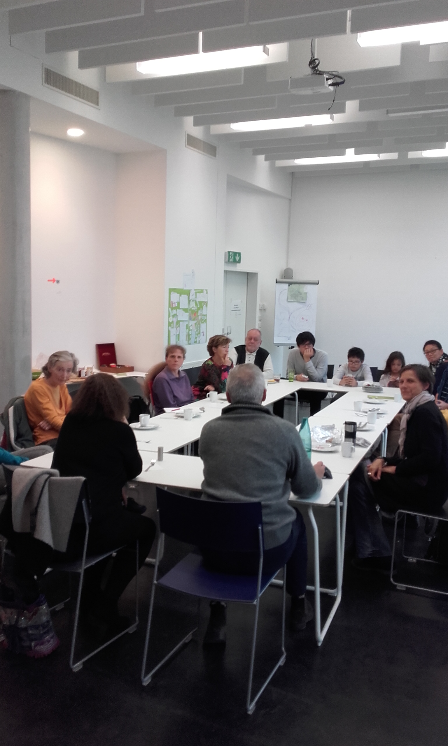 Beim Wohnprojekte-Frühstück waren 16 Personen anwesend, davon auch einige Bewohner, die bereitwillig Auskunft gaben und bestätigten, dass sie sich in diesem Haus sehr wohl fühlen.